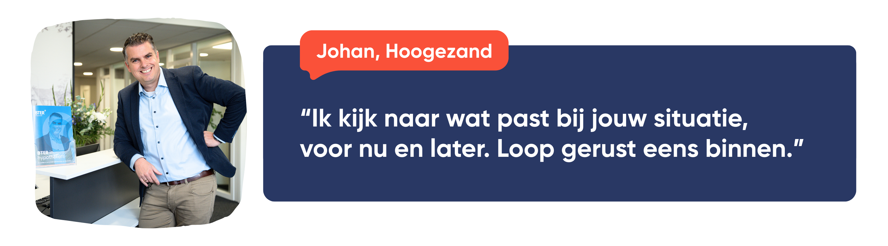 In veel gevallen is er meer mogelijk dan je verwacht. Johan luistert, stelt de juiste vragen en begeleidt je naar een oplossing die aansluit bij jouw situatie. Zo ontstaat rust en financiële zekerheid.